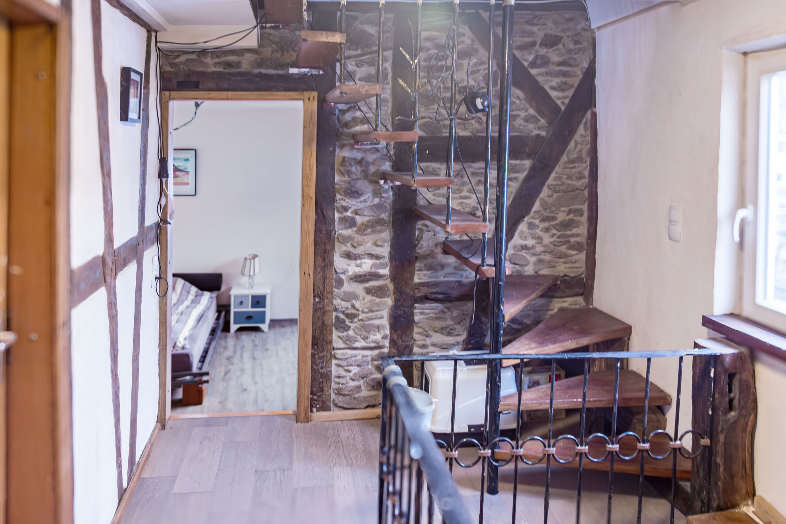 Die Zimmer befinden sich in einem Fachwerkhaus, welches liebevoll mit Naturmaterialien renoviert wurde. Wir rauchen selbst in Küche und Wohnzimmer (EG), allerdings nicht in den Schlafräumen. Draussen kann auf Wunsch gegrillt werden. Ein Raucherhäuschen steht auch zur Verfügung. Wir wünschen uns Respekt vor Haus & Natur.